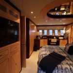 Her Master cabin with a king-sized bed double bed is located aft and has no less than ten windows giving, a light bright and spacious feel. Alternatively, blinds may be lowered for a more intimate atmosphere and privacy.!